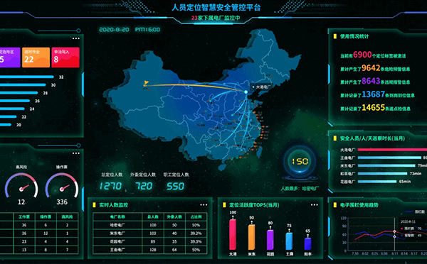 云酷科技結(jié)合集團(tuán)安全需求現(xiàn)狀,建設(shè)人員定位管控系統(tǒng),通過構(gòu)建全廠1:1等比例三維模型和部署UWB高精度定位設(shè)備,實(shí)現(xiàn)人、車實(shí)時位置監(jiān)控;通過集成電廠各相關(guān)業(yè)務(wù)系統(tǒng),實(shí)現(xiàn)安全數(shù)據(jù)的協(xié)同聯(lián)動;通過在集團(tuán)側(cè)部署智慧安全管控平臺,為集團(tuán)提供安全監(jiān)控及大數(shù)據(jù)分析工具。