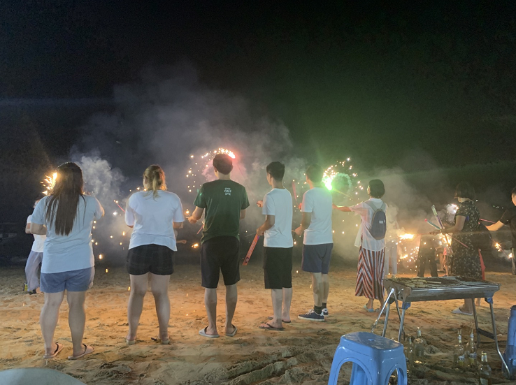 煙火代表一種歡快的日子,在這樣的時光中當然是少不了的,吃累了,喝飽了,唱歌的唱歌,放煙花的放煙花,大家都帶著不嗨不睡的態(tài)度,放開了玩,仿佛回到了童年